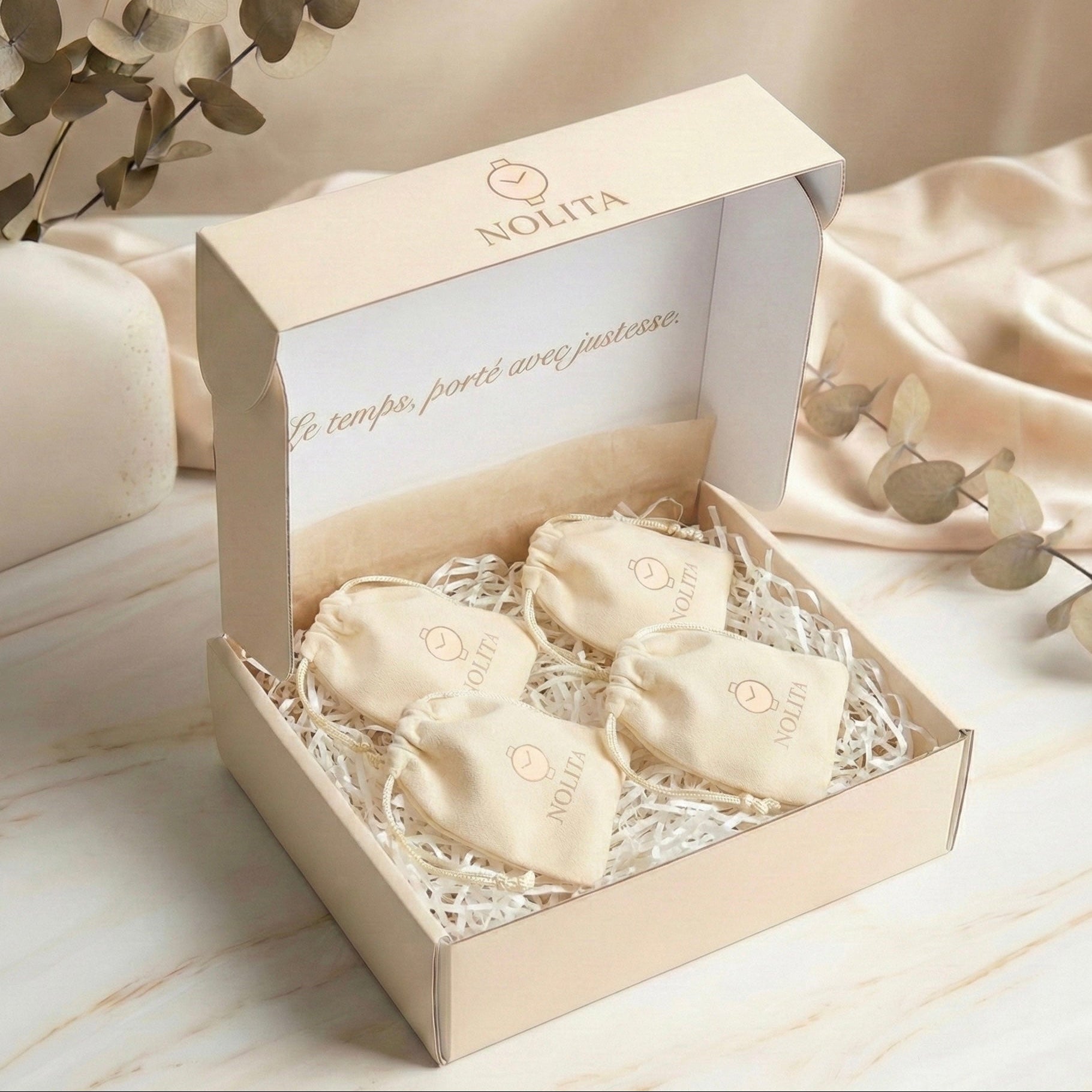 À l'intérieur, pas une, mais quatre montres NOLITA soigneusement sélectionnées pour vous, d'une valeur totale de 150€. Que ce soit pour démarrer une collection, pour avoir le choix chaque matin, ou pour offrir un cadeau inoubliable, cette box est la solution parfaite.