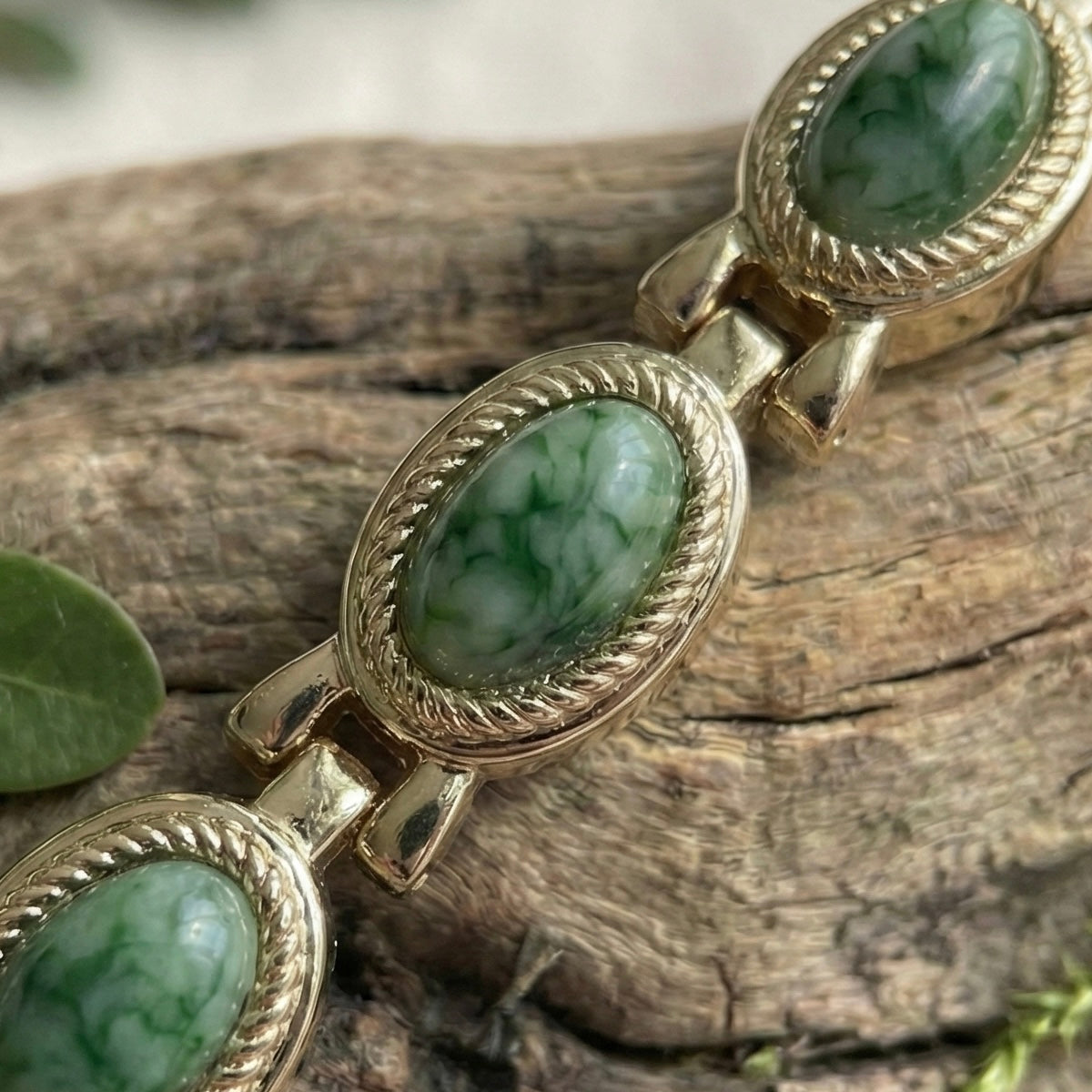 Avec ses pierres vert profond serties tout autour du bracelet, cette montre affiche un charme ancien et chic. Son cadran discret apporte une touche de douceur, parfaite pour un look vintage ou bohème.